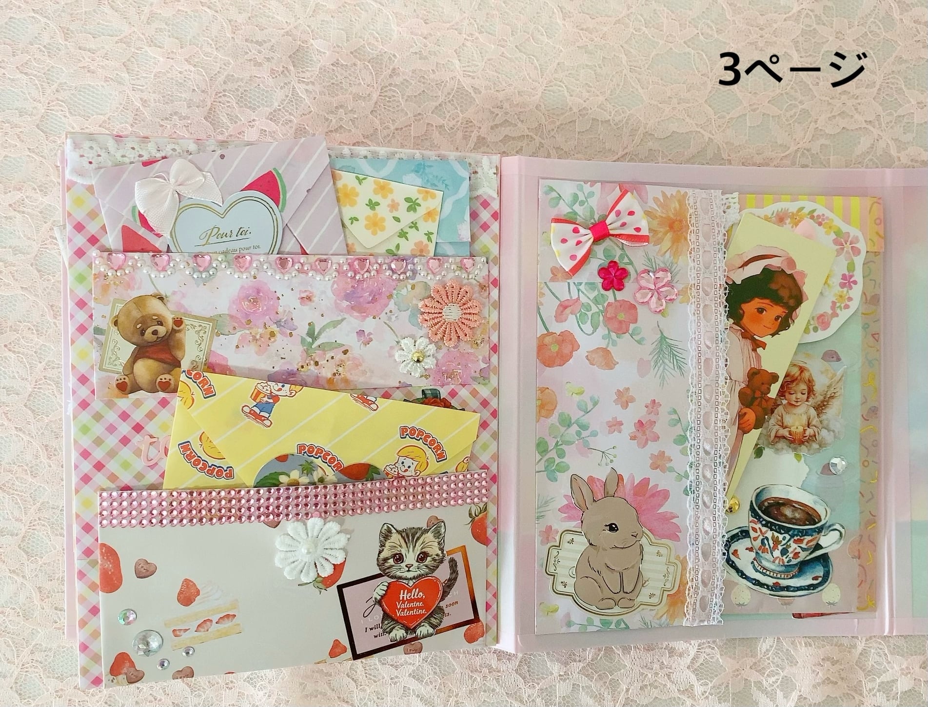 中に入ってる封筒には、メモやステッカー・シール・コラージュ素材・ペーパーなどが入っております