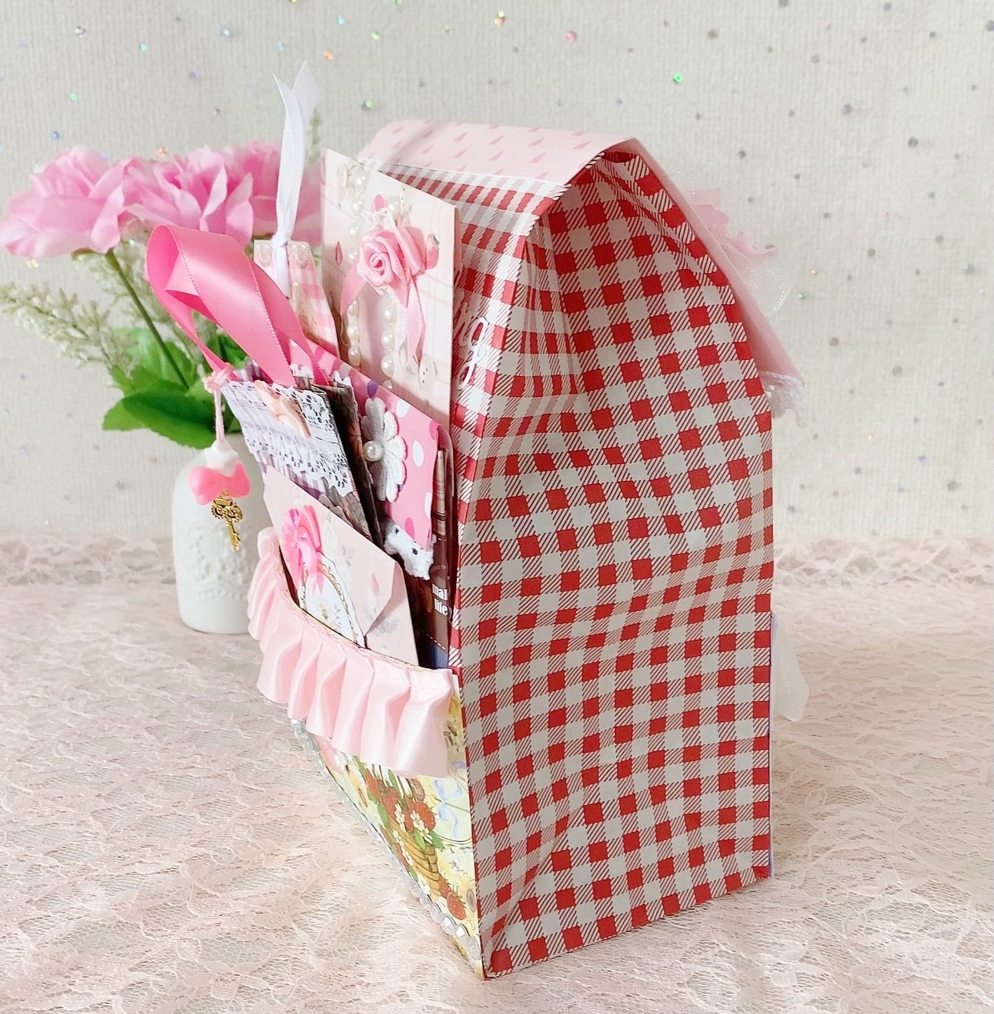 中に入ってる封筒には、メモやステッカー・シール・コラージュ素材・ペーパーなどが入っております