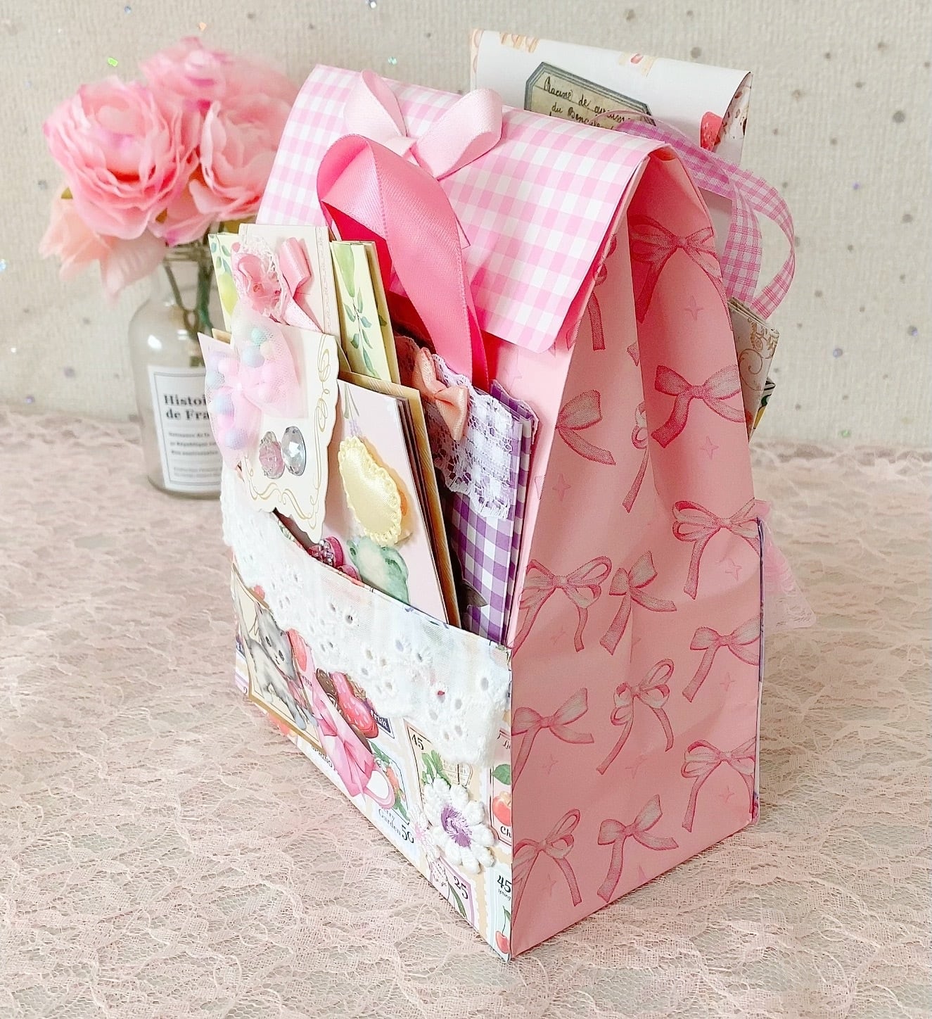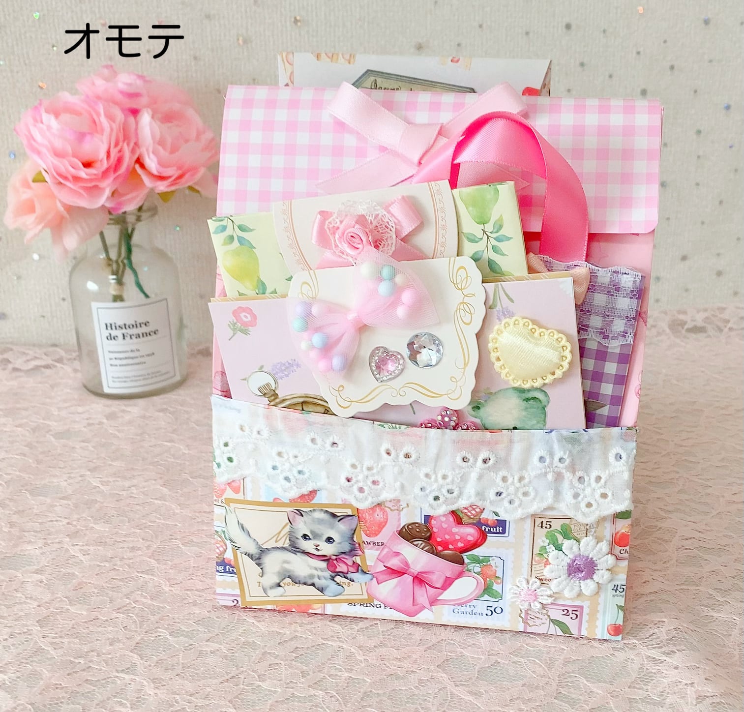 中に入ってる封筒には、メモやステッカー・シール・コラージュ素材・ペーパーなどが入っております