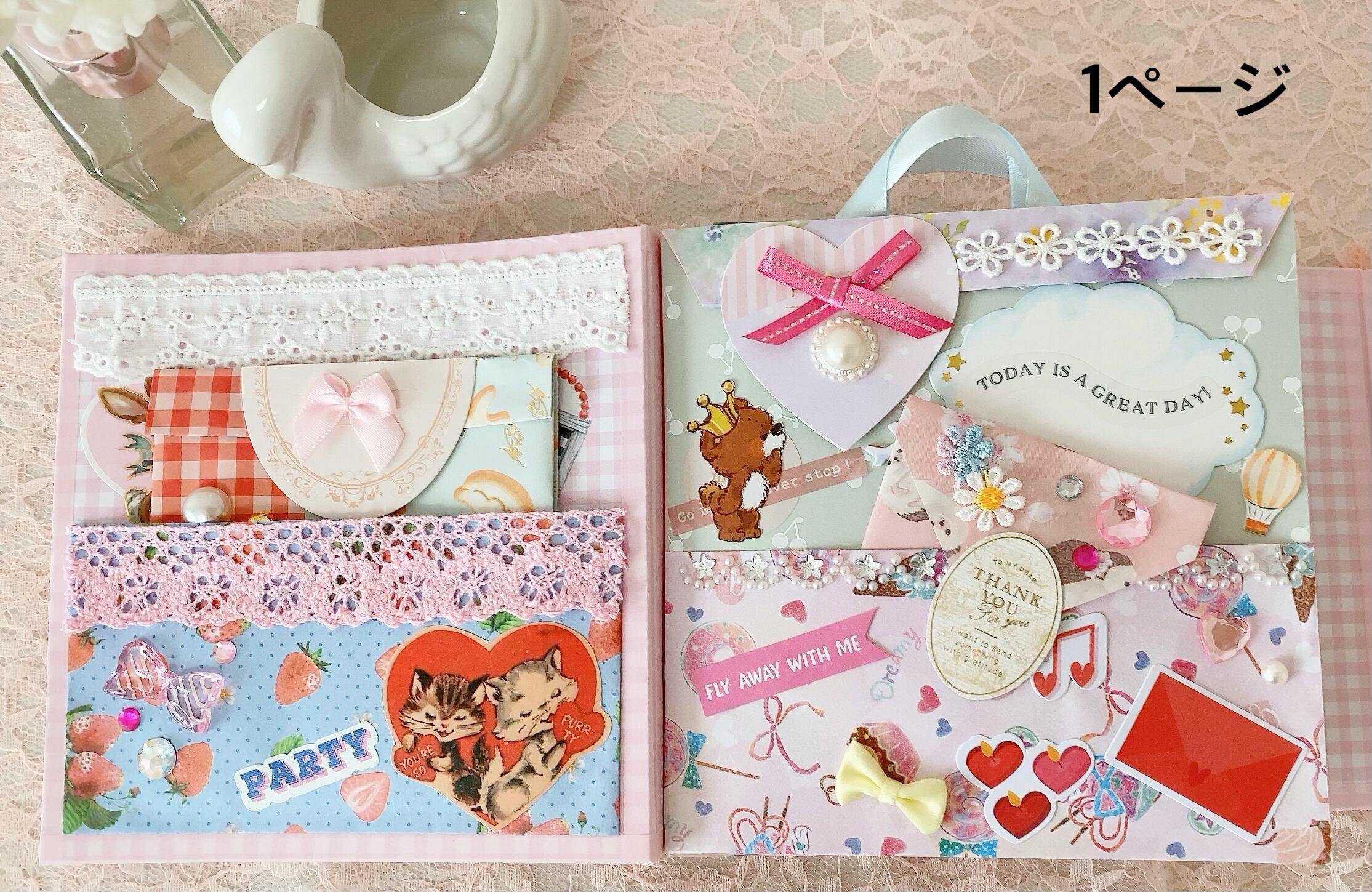 中に入ってる封筒には、メモやステッカー・シール・コラージュ素材・ペーパーなどが入っております