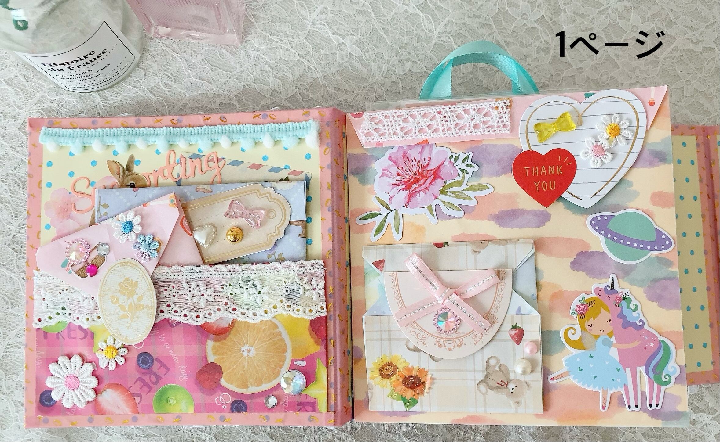 中に入ってる封筒には、メモやステッカー・シール・コラージュ素材・ペーパーなどが入っております