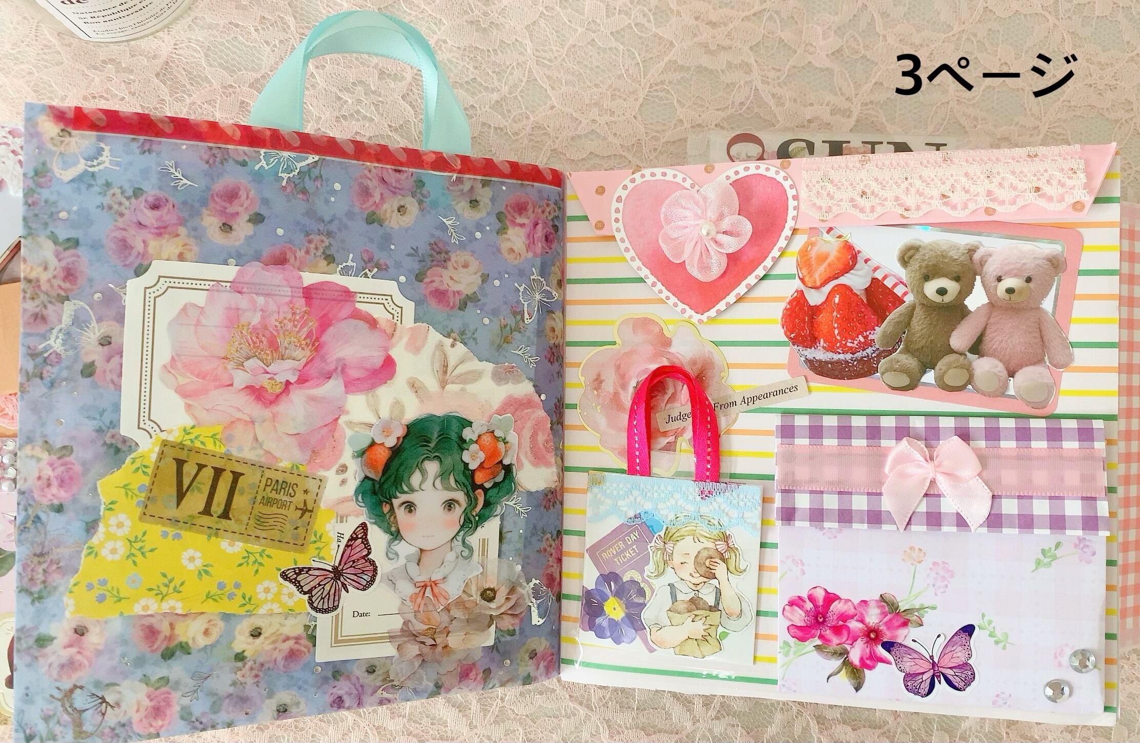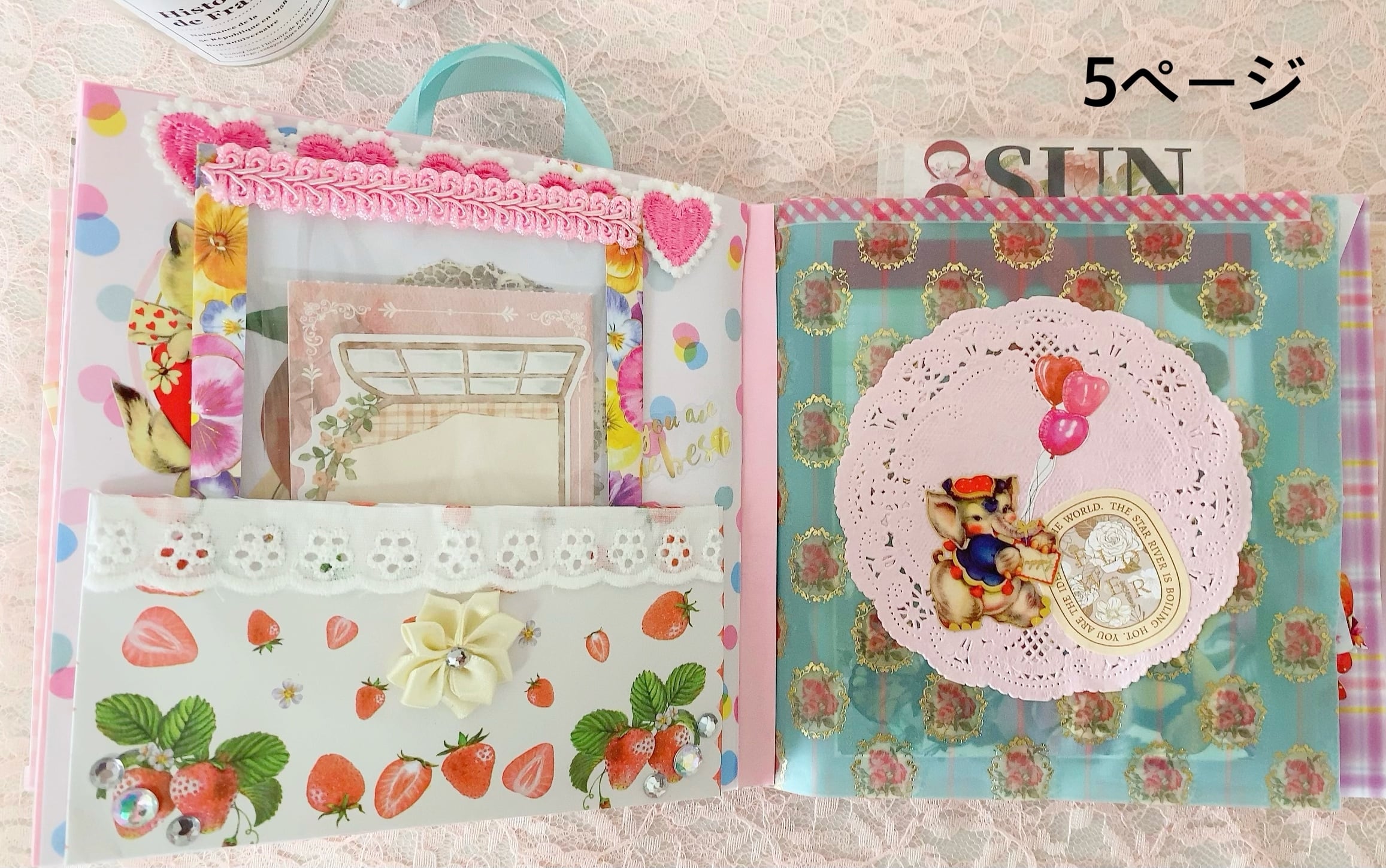 中に入ってる封筒には、メモやステッカー・シール・コラージュ素材・ペーパーなどが入っております
