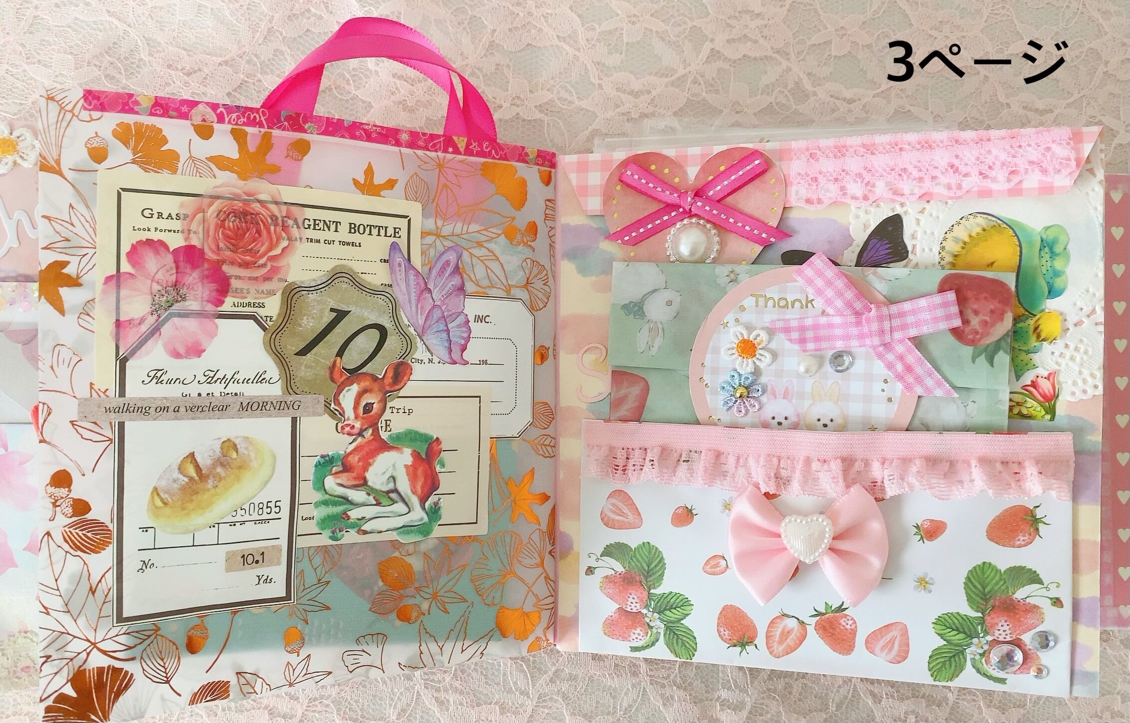 中に入ってる封筒には、メモやステッカー・シール・コラージュ素材・ペーパーなどが入っております