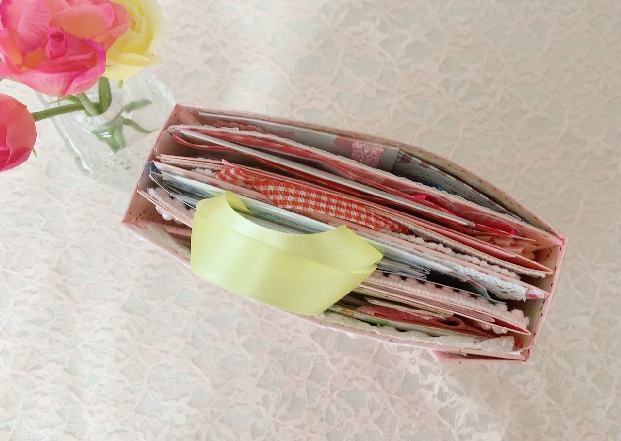 中に入ってる封筒には、メモやステッカー・シール・コラージュ素材・ペーパーなどが入っております