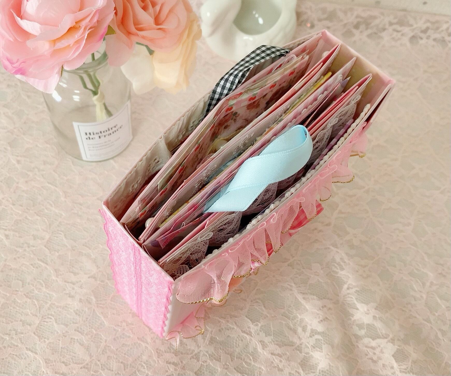 中に入ってる封筒には、メモやステッカー・シール・コラージュ素材・ペーパーなどが入っております