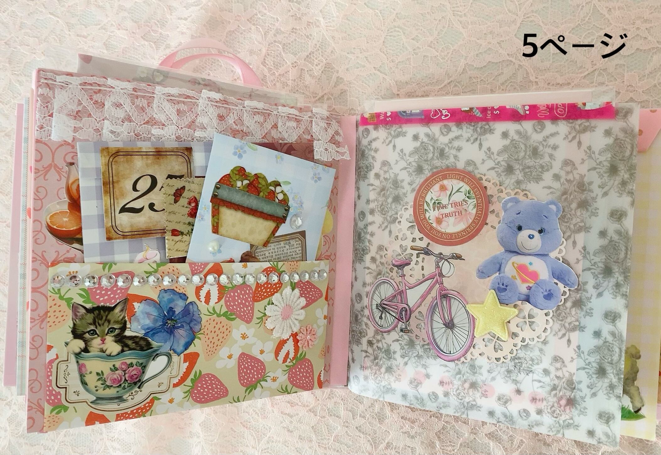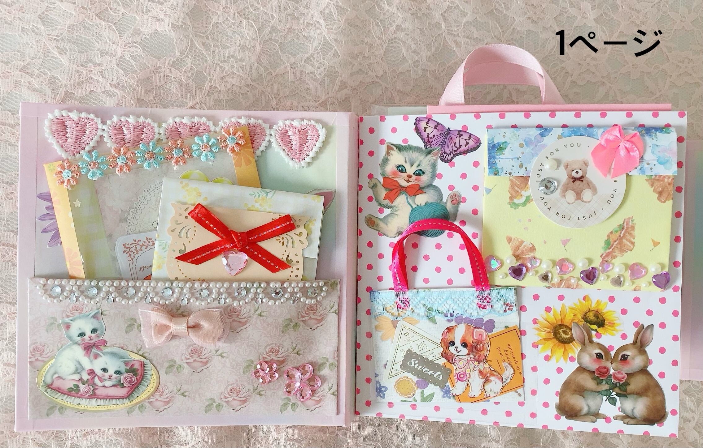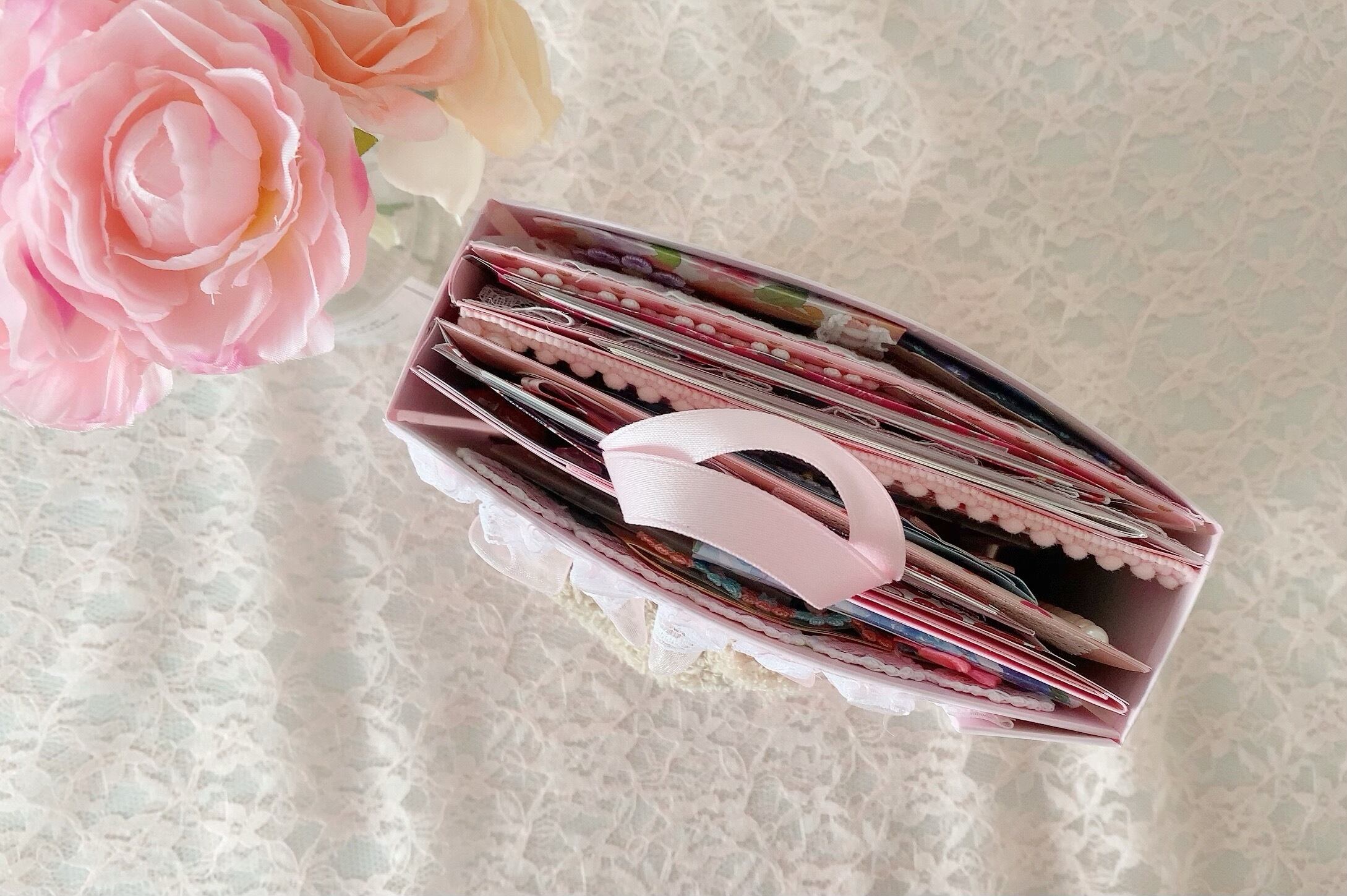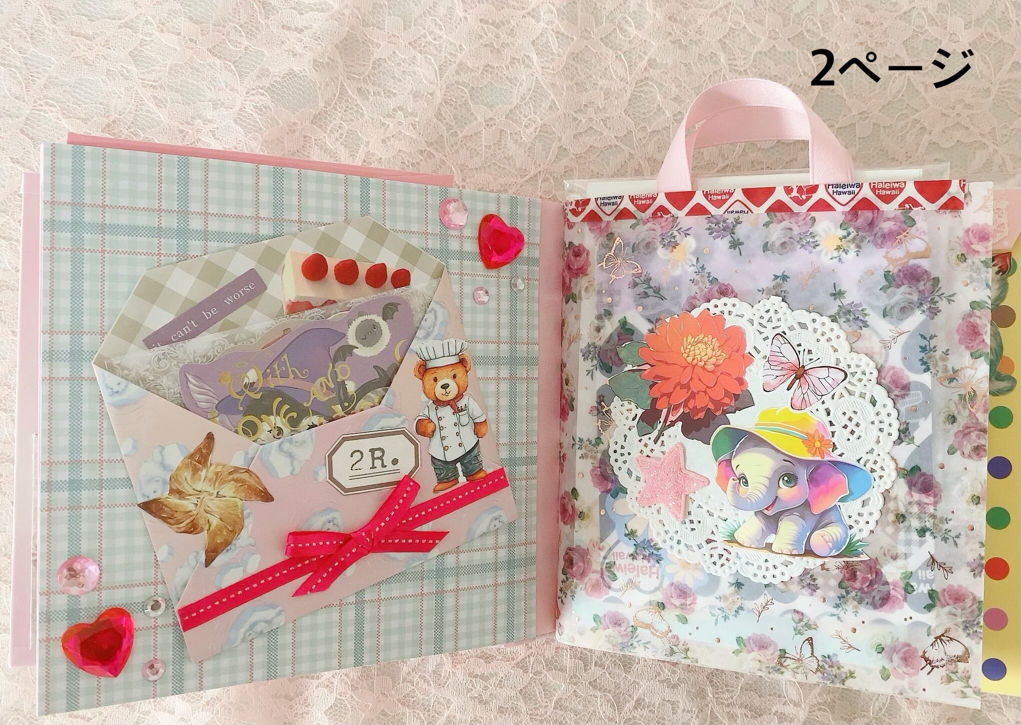 中に入ってる封筒には、メモやステッカー・シール・コラージュ素材・ペーパーなどが入っております