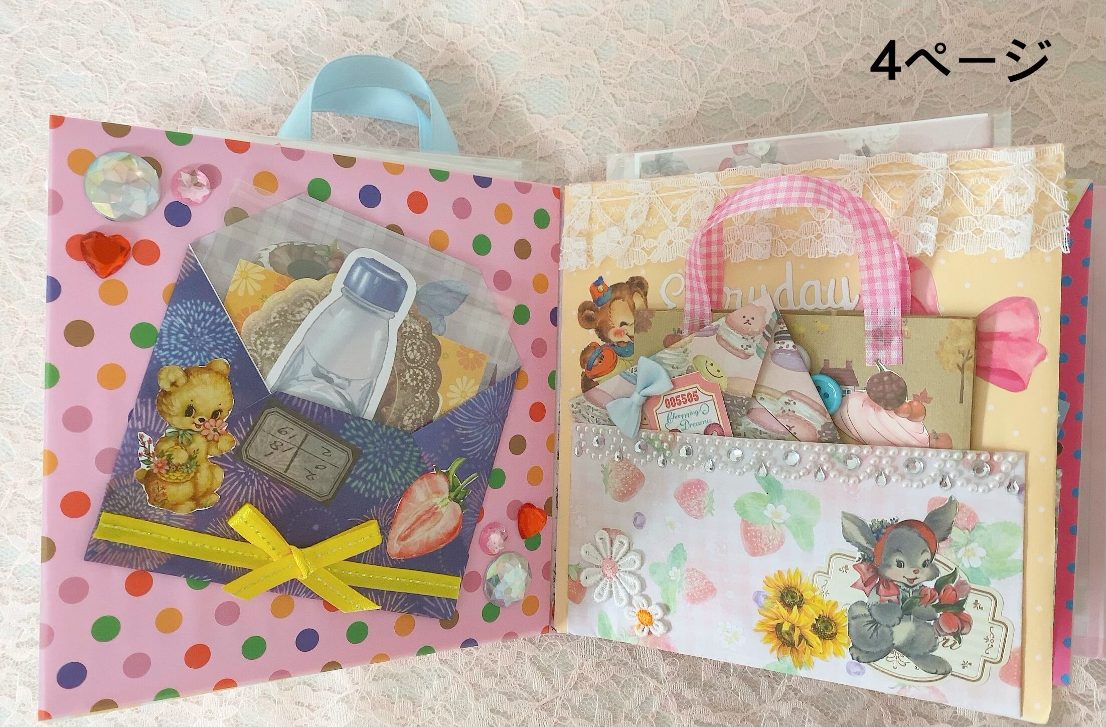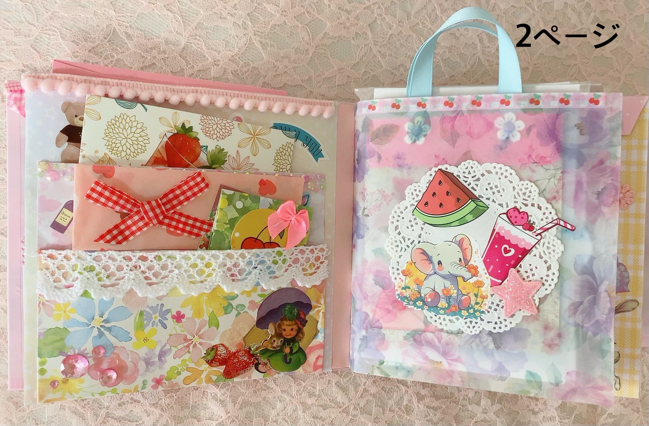 中に入ってる封筒には、メモやステッカー・シール・コラージュ素材・ペーパーなどが入っております